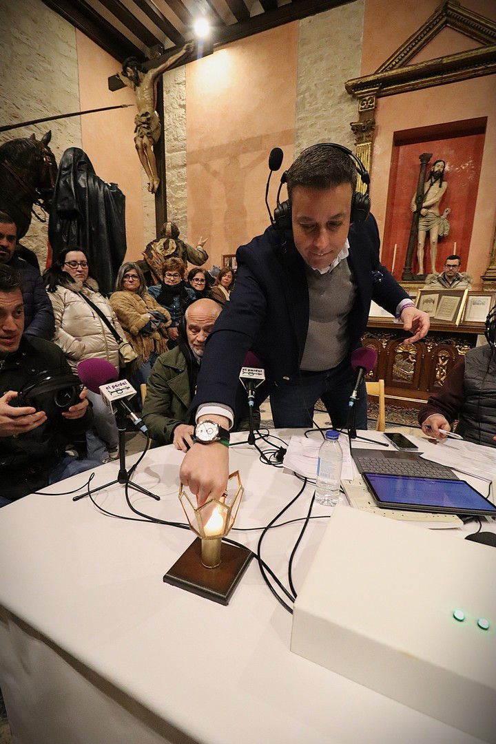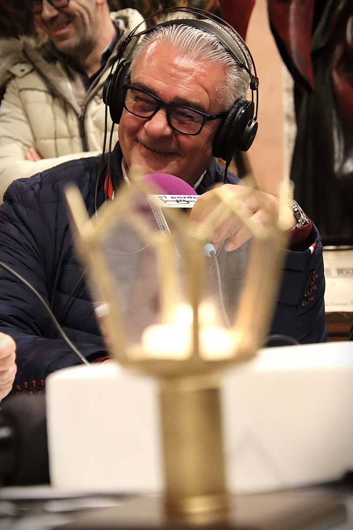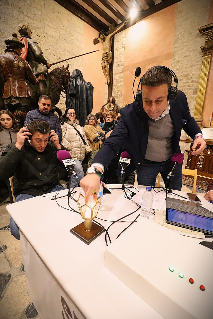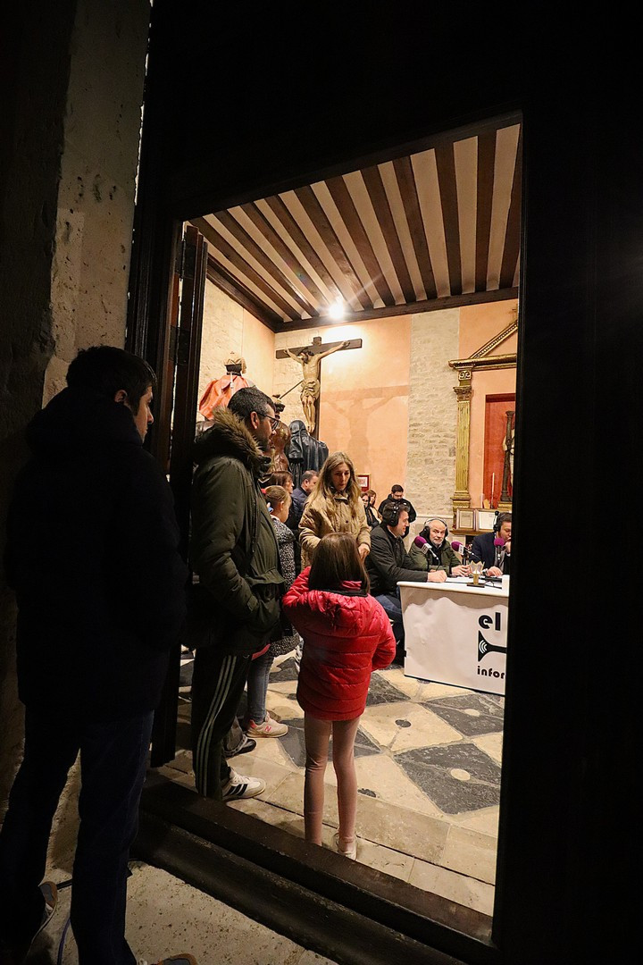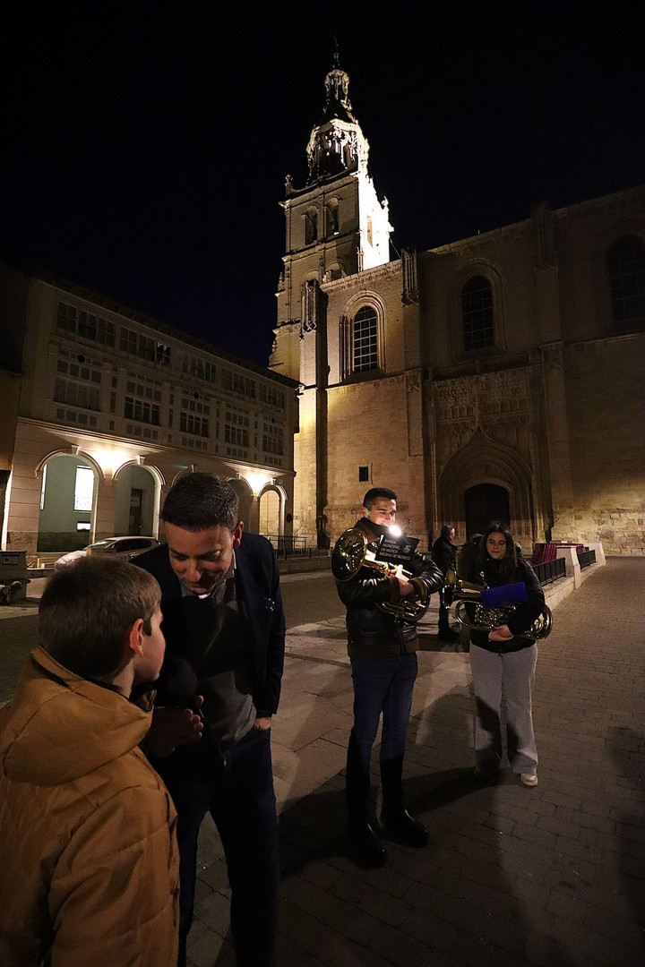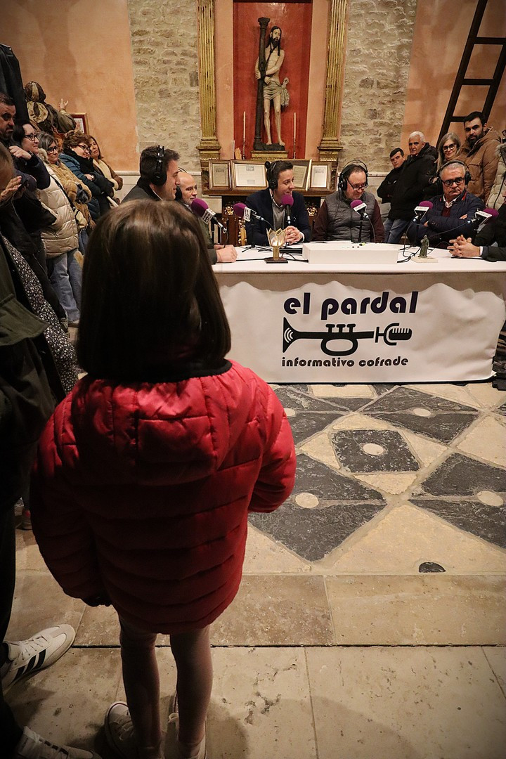 Pero el programa comenzó repleto de emociones. Se entregó el Premio Pardalero 2026 que en esta ocasión ha recaído en el músico riosecano Pablo Toribio, por su labor en defensa de la Semana Santa y su contribución musical con la composición de más de una docena de marchas procesionales. Los mayordomos de ambas hermandades: Víctor Caramanzana (Longinos) y Nicolás Brezmes (Escalera) atendieron a los micrófonos de El Pardal y se emocionaron cuando la Banda Municipal de Música, por sorpresa, interpretó La Lágrima a las puertas de la Capilla.
