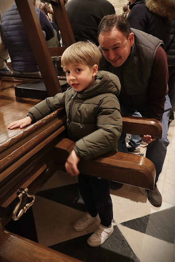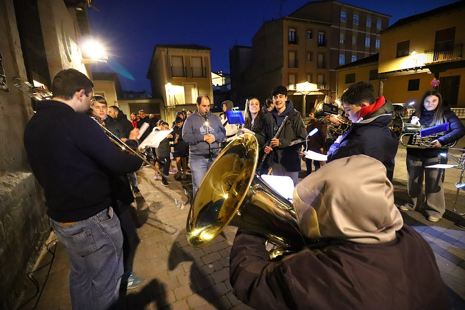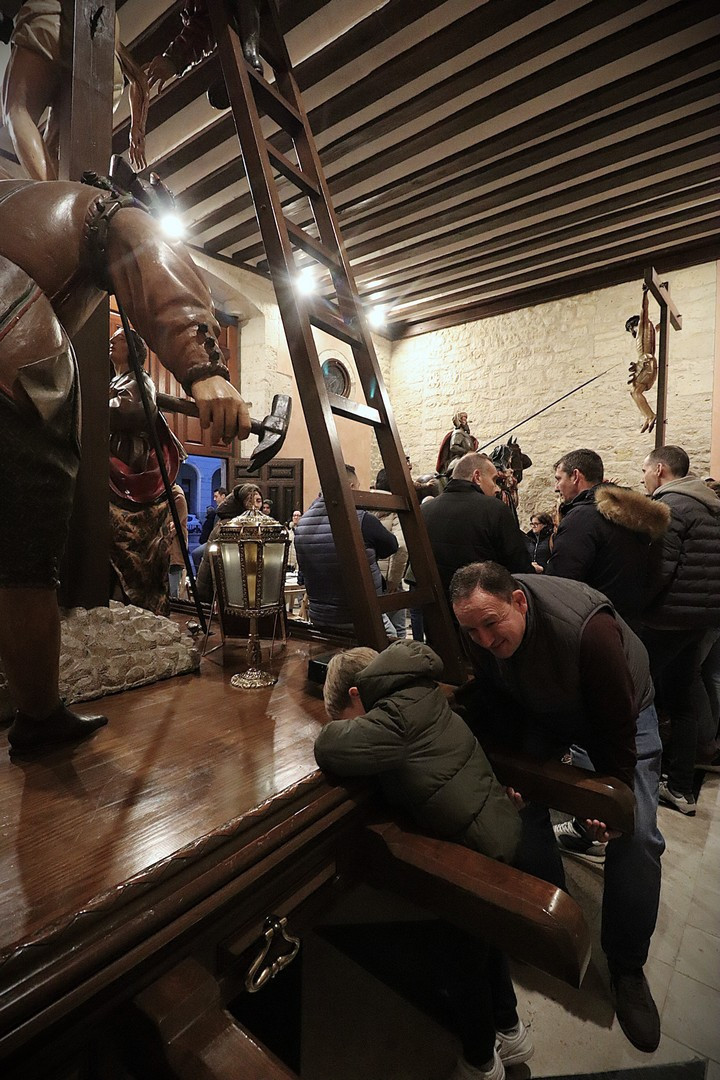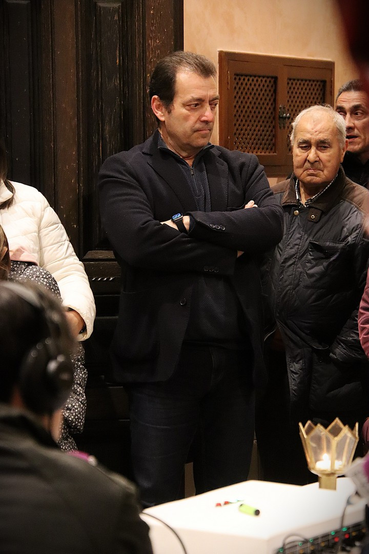 Pero el programa comenzó repleto de emociones. Se entregó el Premio Pardalero 2026 que en esta ocasión ha recaído en el músico riosecano Pablo Toribio, por su labor en defensa de la Semana Santa y su contribución musical con la composición de más de una docena de marchas procesionales. Los mayordomos de ambas hermandades: Víctor Caramanzana (Longinos) y Nicolás Brezmes (Escalera) atendieron a los micrófonos de El Pardal y se emocionaron cuando la Banda Municipal de Música, por sorpresa, interpretó La Lágrima a las puertas de la Capilla.