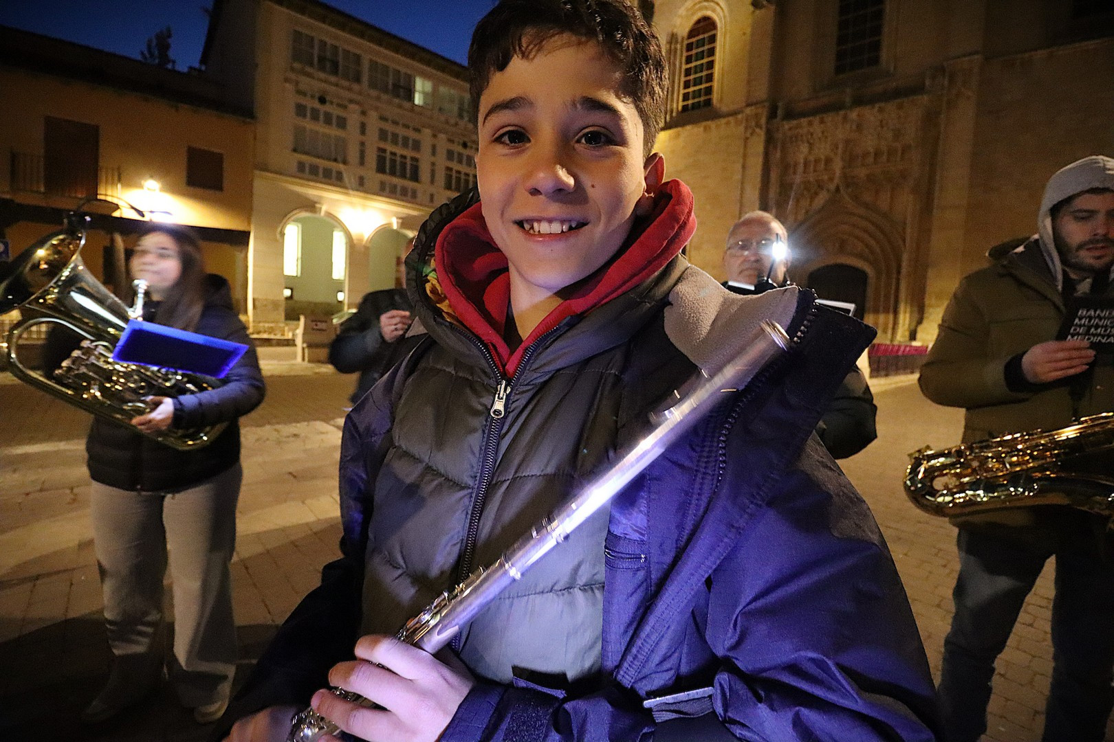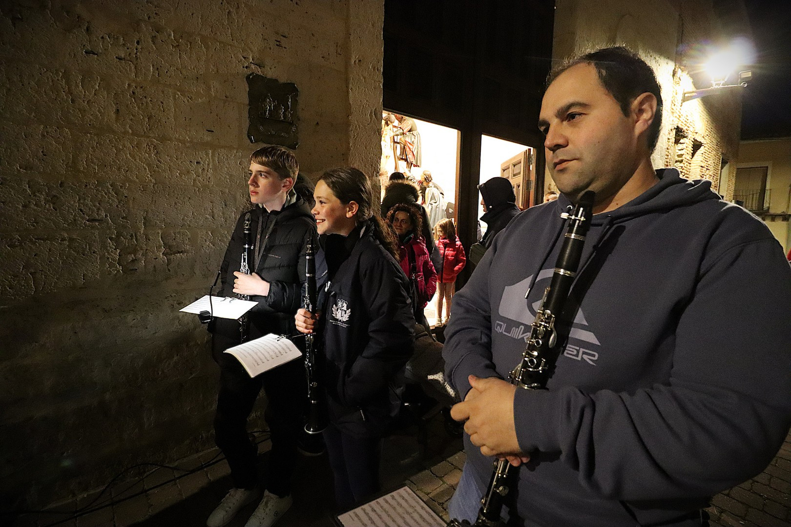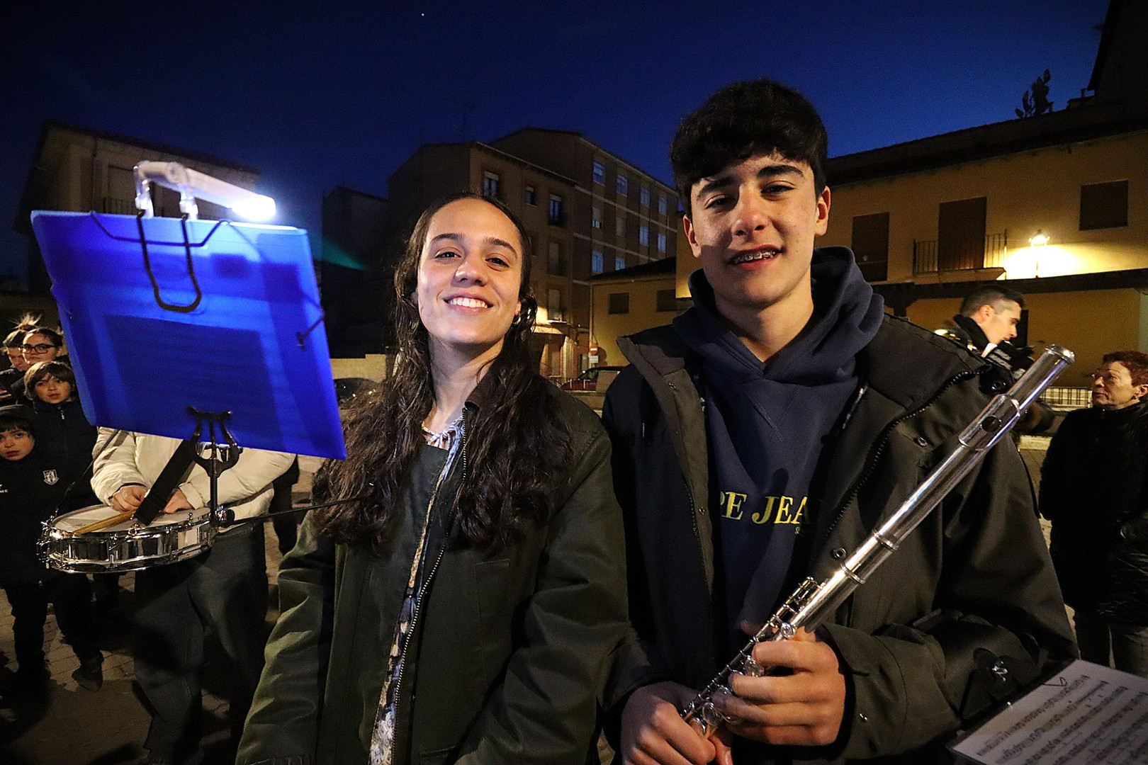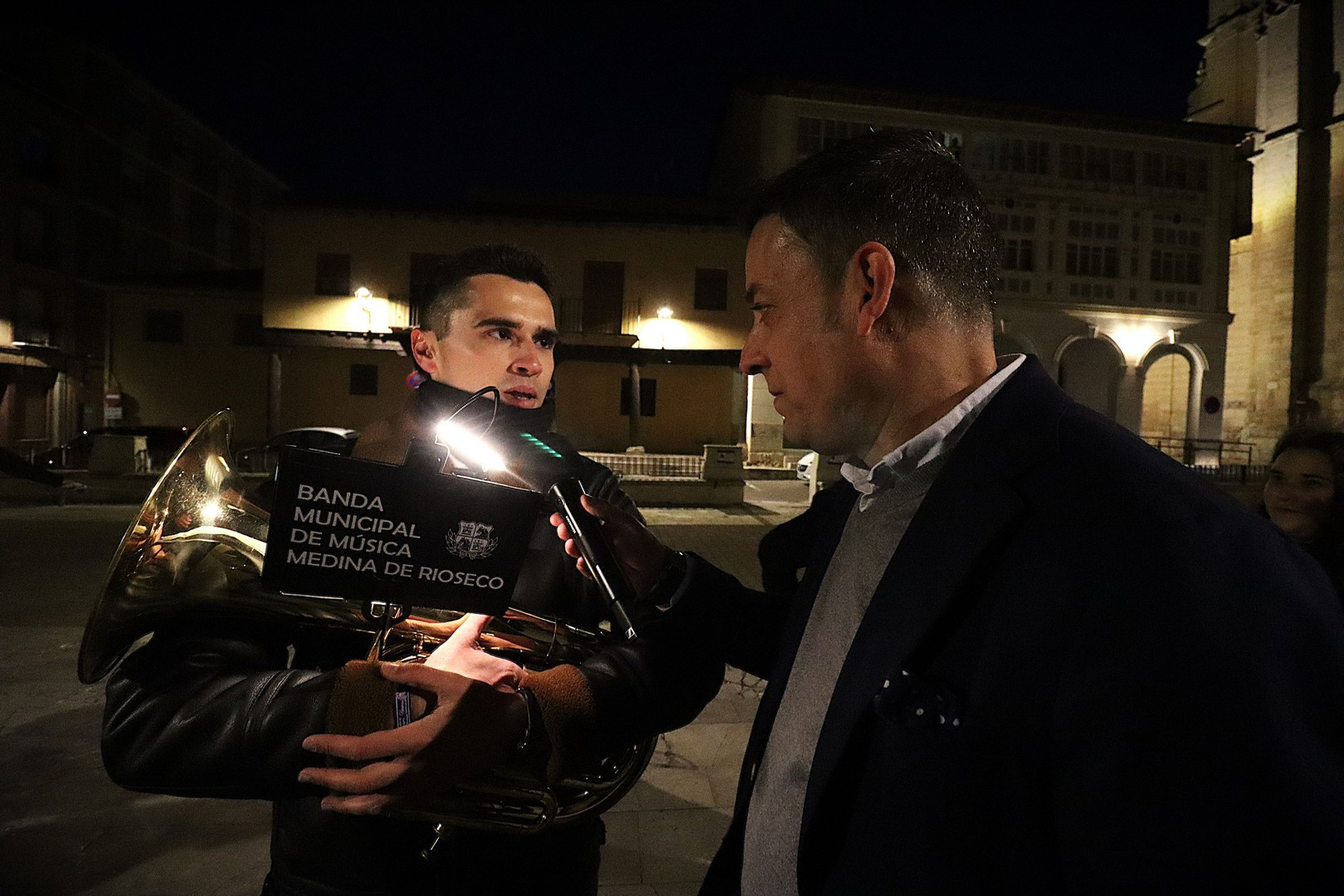 Pero el programa comenzó repleto de emociones. Se entregó el Premio Pardalero 2026 que en esta ocasión ha recaído en el músico riosecano Pablo Toribio, por su labor en defensa de la Semana Santa y su contribución musical con la composición de más de una docena de marchas procesionales. Los mayordomos de ambas hermandades: Víctor Caramanzana (Longinos) y Nicolás Brezmes (Escalera) atendieron a los micrófonos de El Pardal y se emocionaron cuando la Banda Municipal de Música, por sorpresa, interpretó La Lágrima a las puertas de la Capilla.