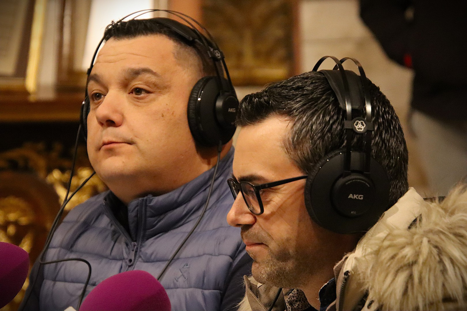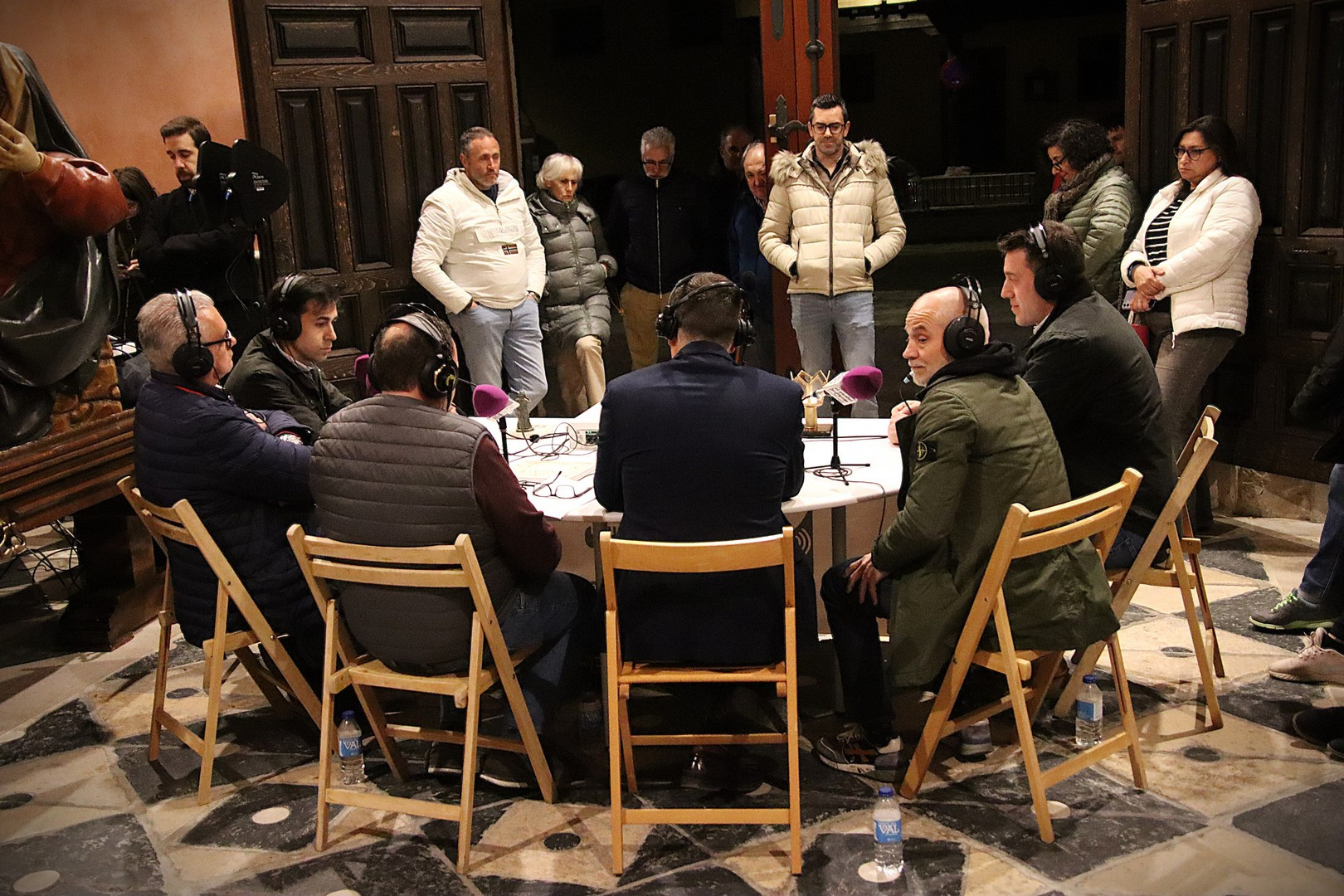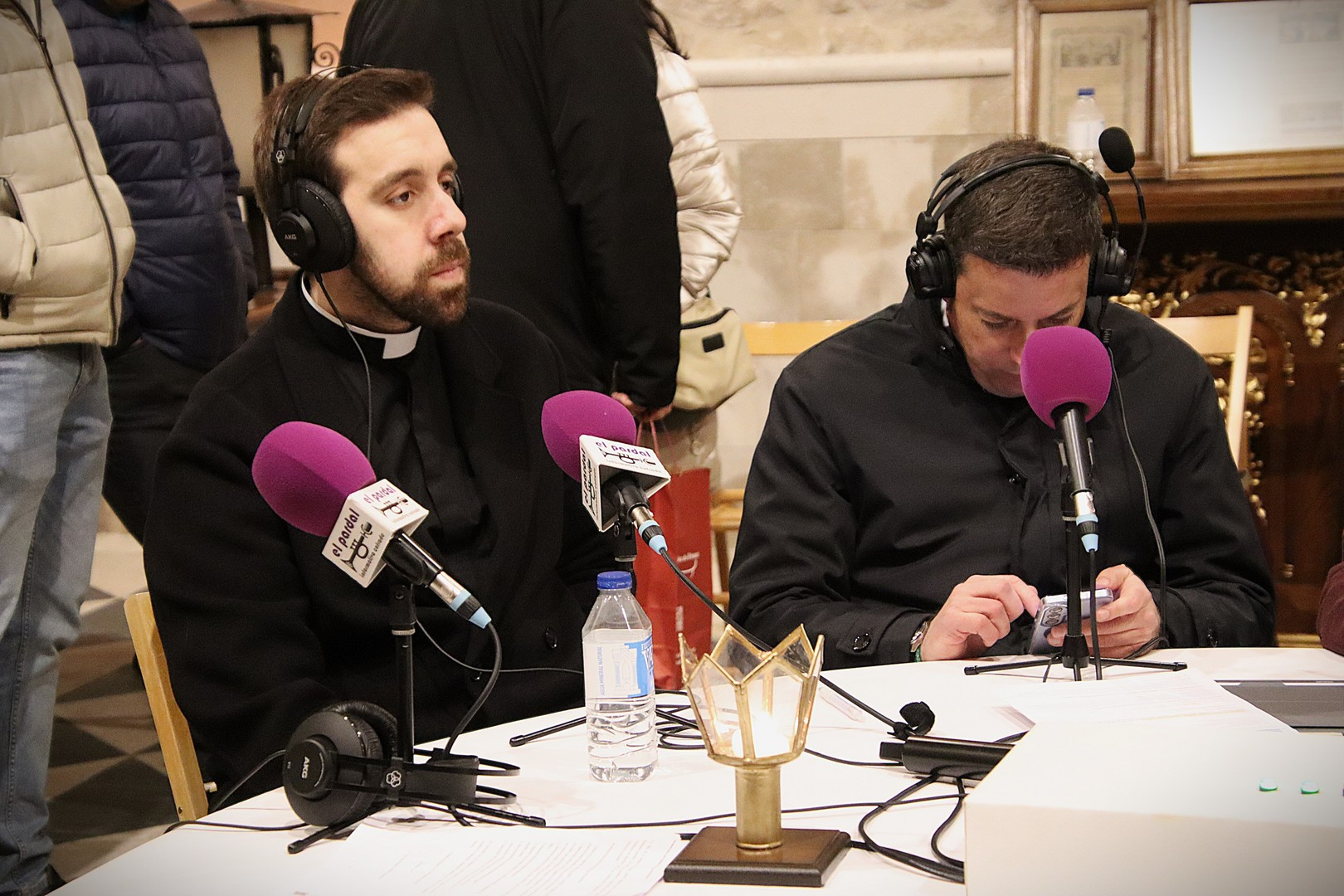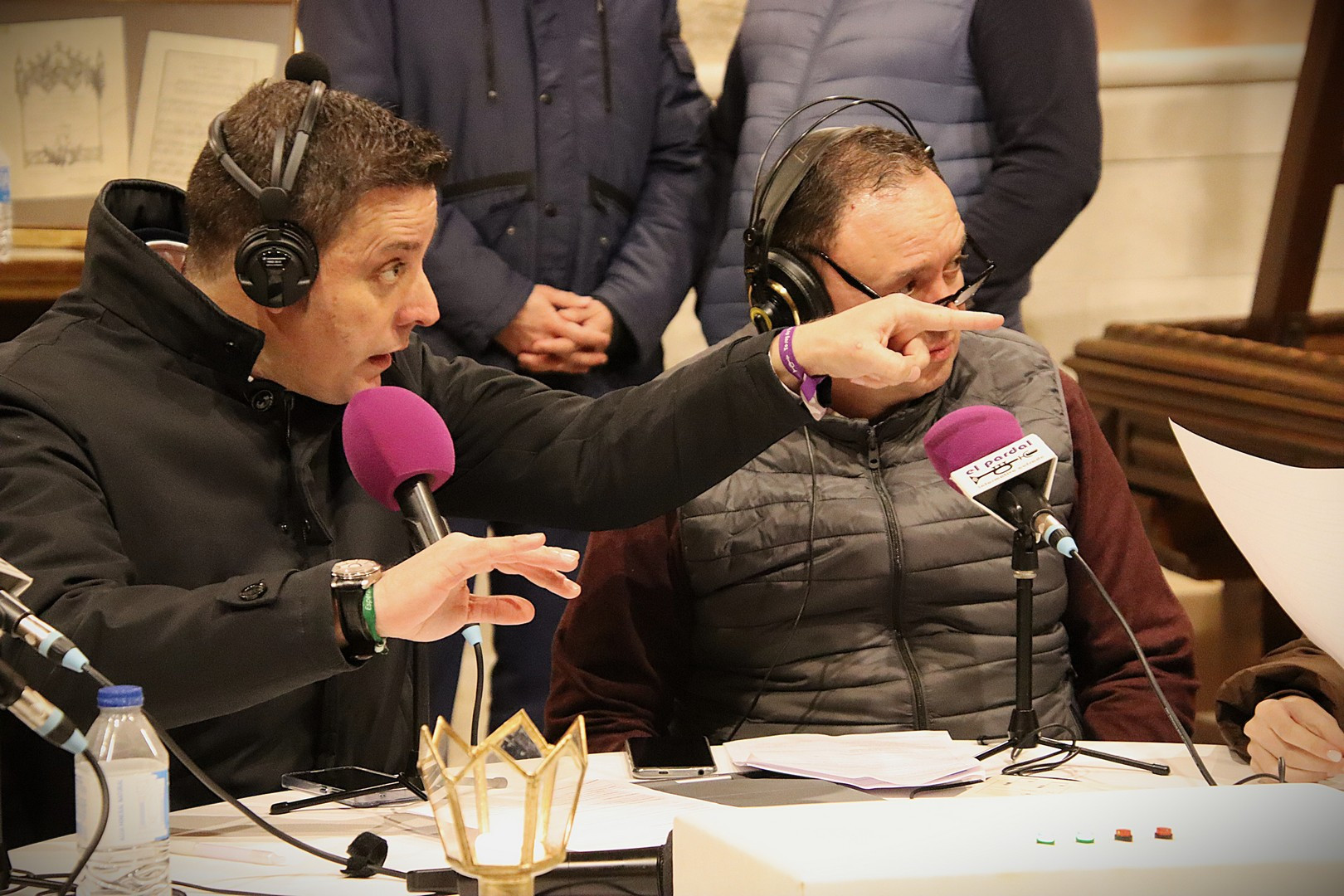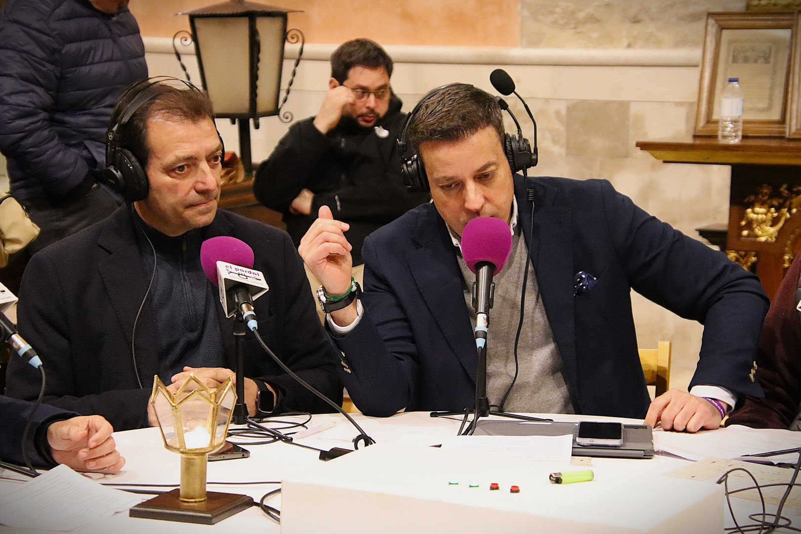 Junto a los mayordomos, estuvieron los cadenas 2025 Julen Mateo y Miguel Pérez Fuentes, quienes recordaron cómo fue esa experiencia inolvidable de sacar estos dos pasos Grandes ocupando el puesto de mayor responsabilidad. Todo el programa estuvo dedicado a Longinos y Escalera. De esta forma, la sección Un poso con… entrevistó a Óscar De Castro Manrique (Descendimiento) y El cofrade en la distancia viajó hasta Madrid para conocer la historia de Ana Pascual (Crucifixión). La voz del ayer rescató los sonidos que hablaban de esa primera gran restauración de la capilla en 1998 y no faltaron secciones habituales como ‘Un minuto con don Alberto’, Boletín cofrade y la Agenda.