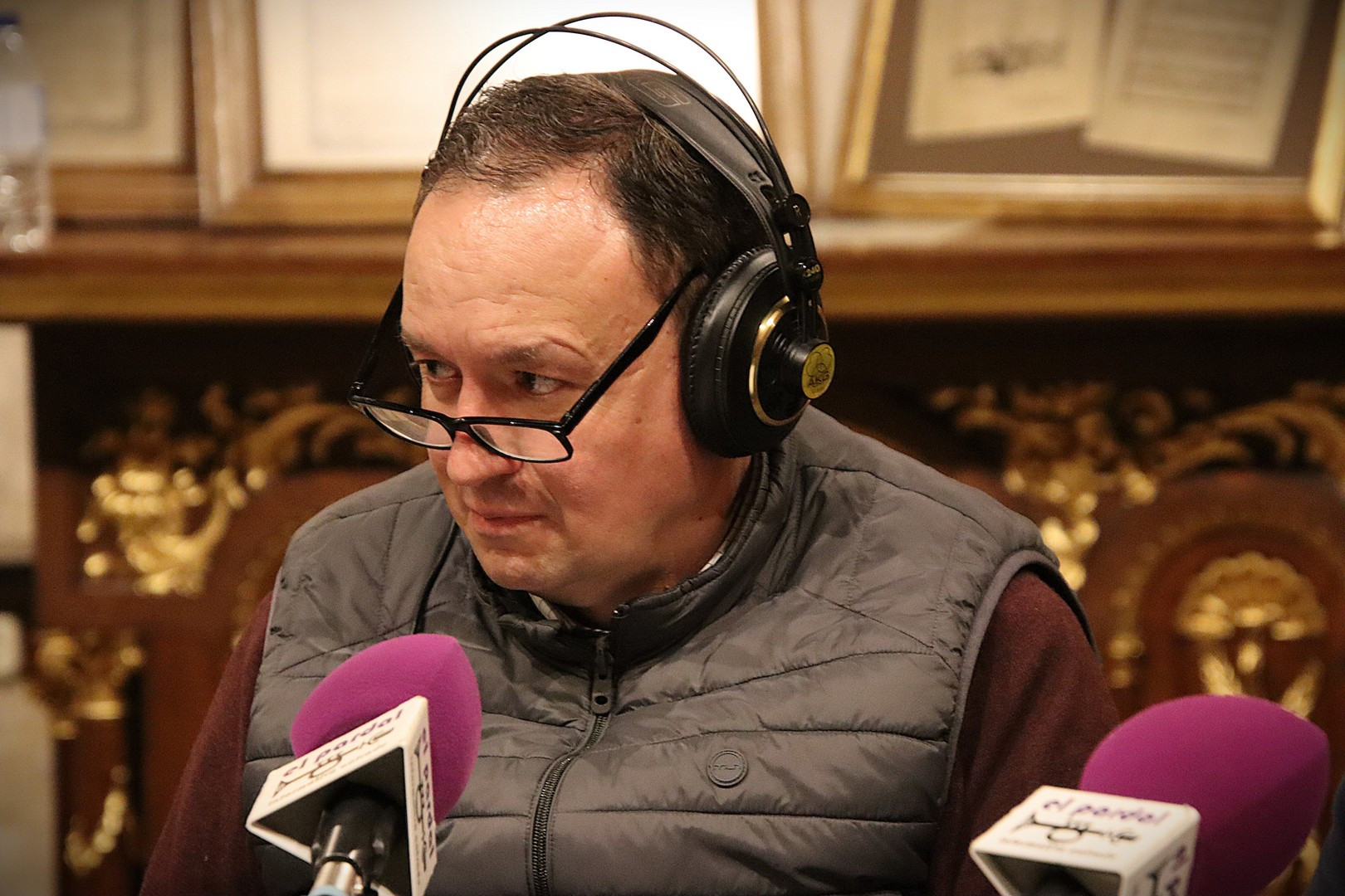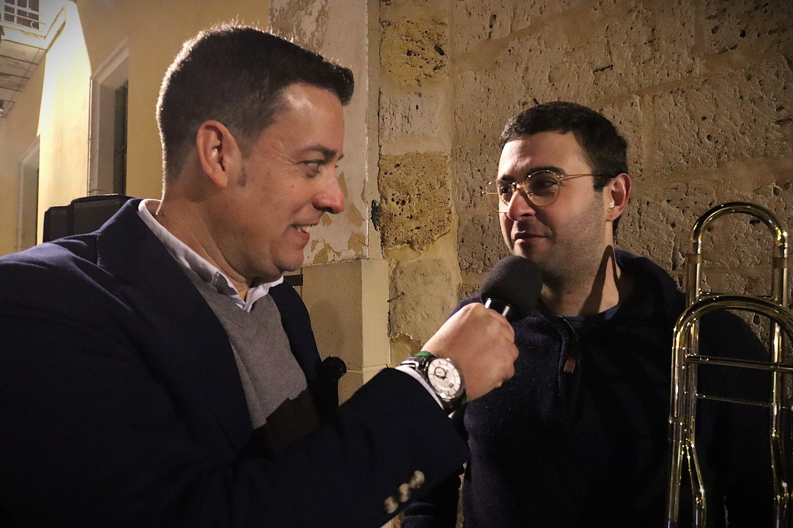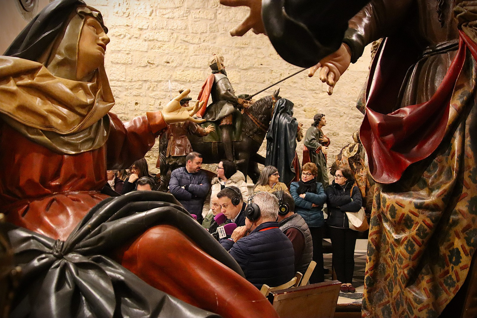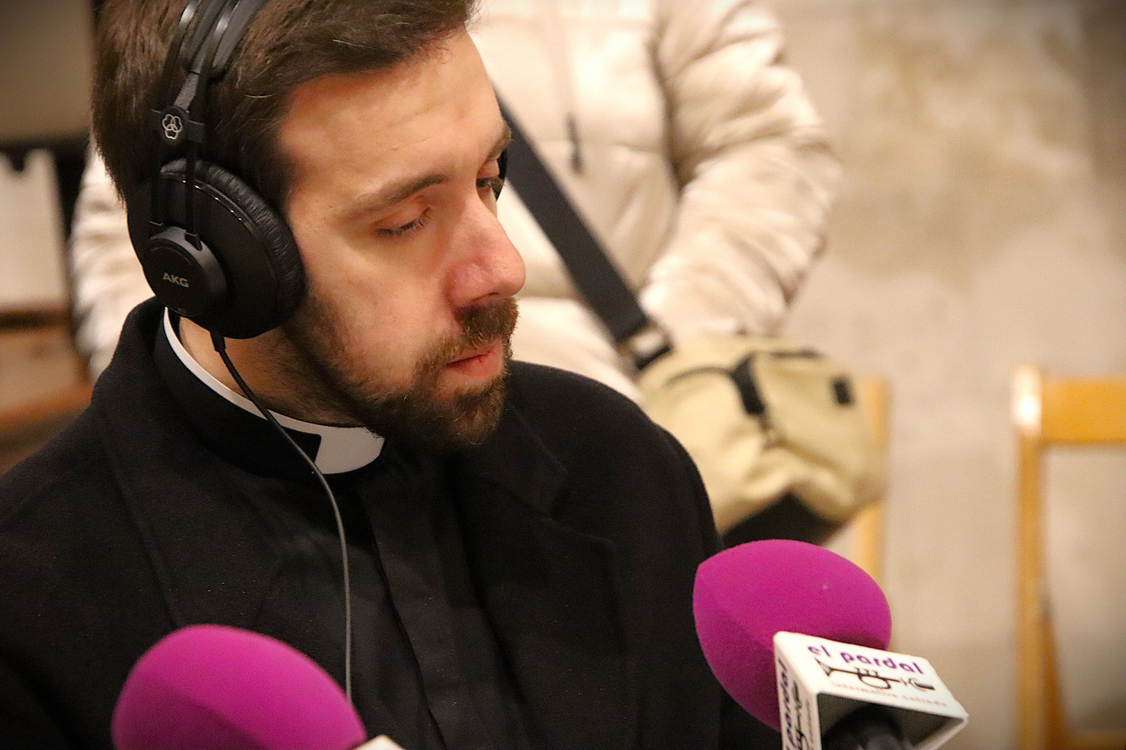 Junto a los mayordomos, estuvieron los cadenas 2025 Julen Mateo y Miguel Pérez Fuentes, quienes recordaron cómo fue esa experiencia inolvidable de sacar estos dos pasos Grandes ocupando el puesto de mayor responsabilidad. Todo el programa estuvo dedicado a Longinos y Escalera. De esta forma, la sección Un poso con… entrevistó a Óscar De Castro Manrique (Descendimiento) y El cofrade en la distancia viajó hasta Madrid para conocer la historia de Ana Pascual (Crucifixión). La voz del ayer rescató los sonidos que hablaban de esa primera gran restauración de la capilla en 1998 y no faltaron secciones habituales como ‘Un minuto con don Alberto’, Boletín cofrade y la Agenda.