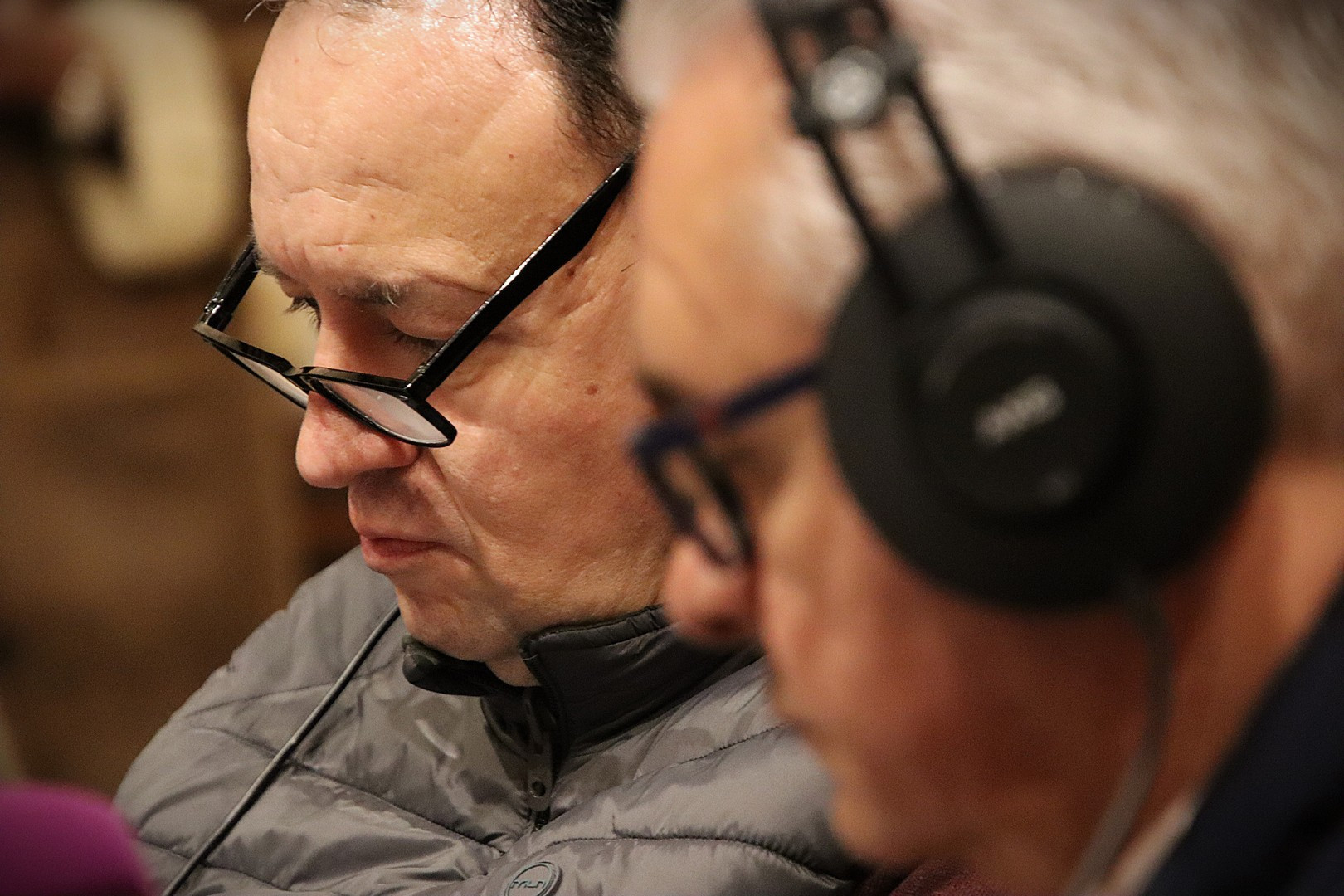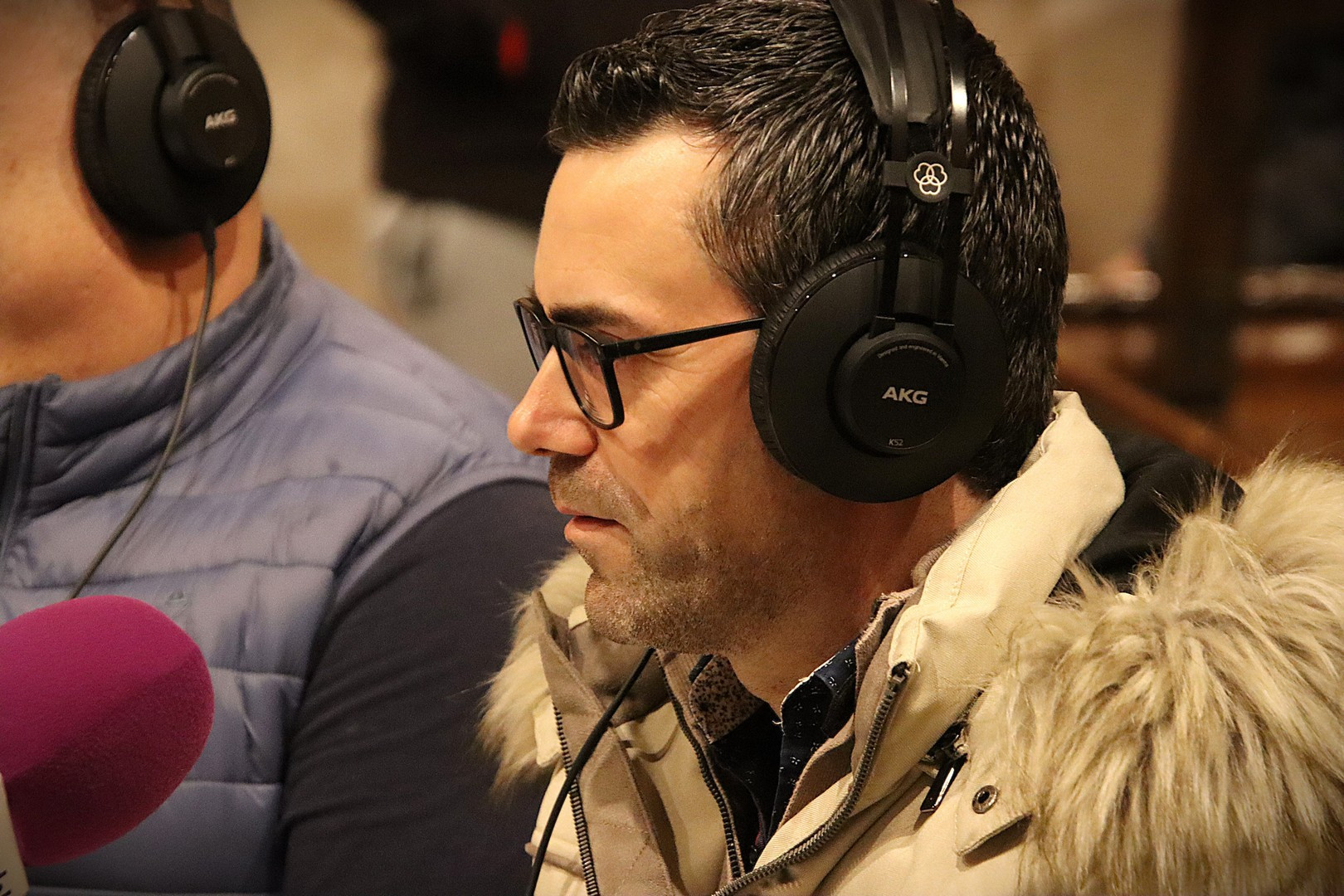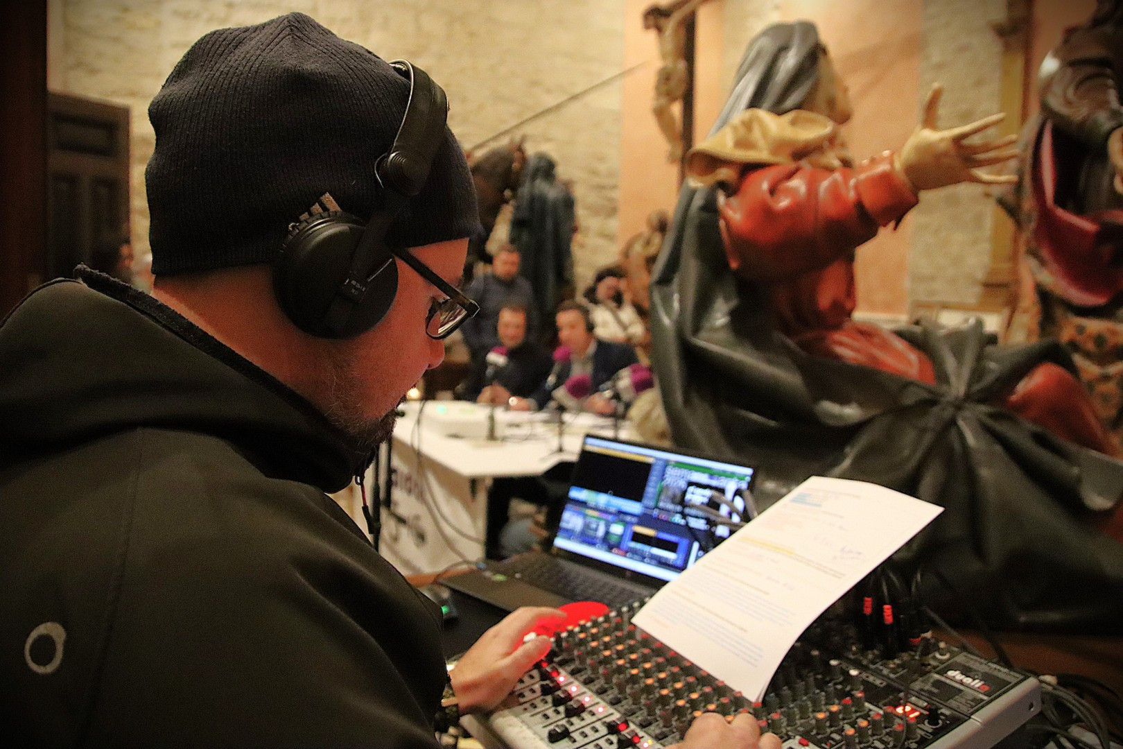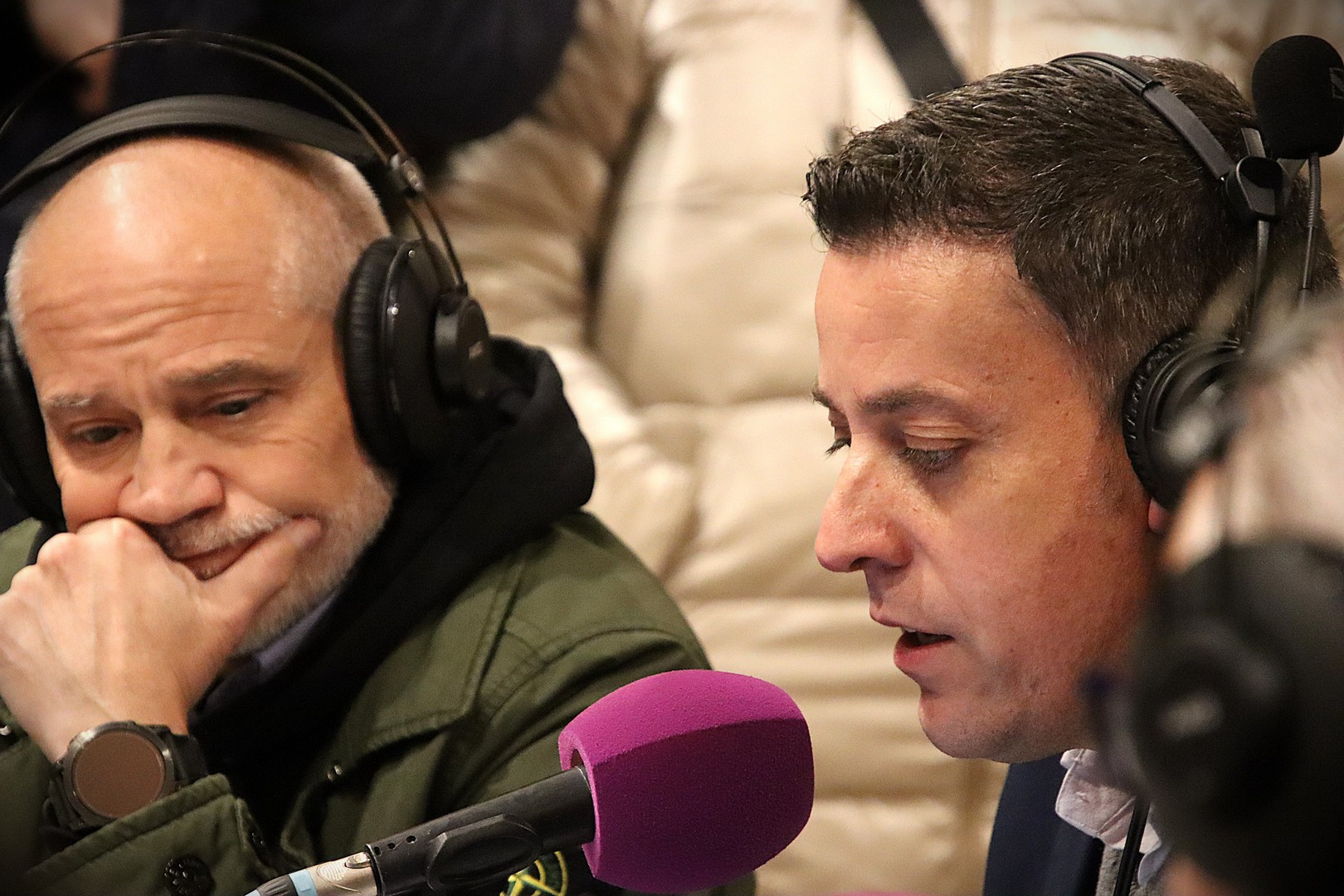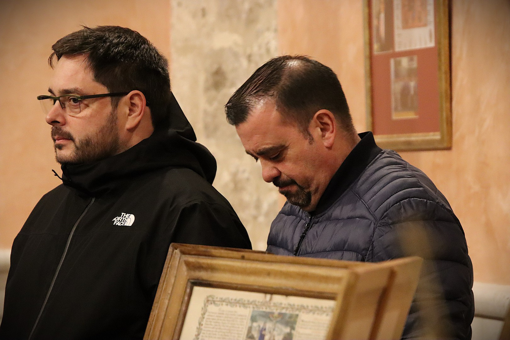 Junto a los mayordomos, estuvieron los cadenas 2025 Julen Mateo y Miguel Pérez Fuentes, quienes recordaron cómo fue esa experiencia inolvidable de sacar estos dos pasos Grandes ocupando el puesto de mayor responsabilidad. Todo el programa estuvo dedicado a Longinos y Escalera. De esta forma, la sección Un poso con… entrevistó a Óscar De Castro Manrique (Descendimiento) y El cofrade en la distancia viajó hasta Madrid para conocer la historia de Ana Pascual (Crucifixión). La voz del ayer rescató los sonidos que hablaban de esa primera gran restauración de la capilla en 1998 y no faltaron secciones habituales como ‘Un minuto con don Alberto’, Boletín cofrade y la Agenda.