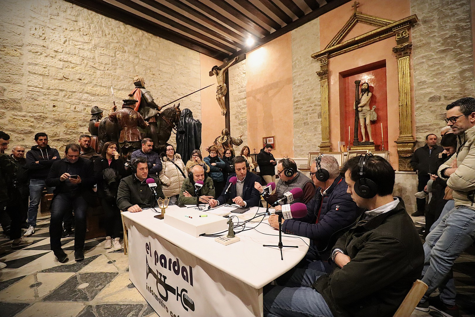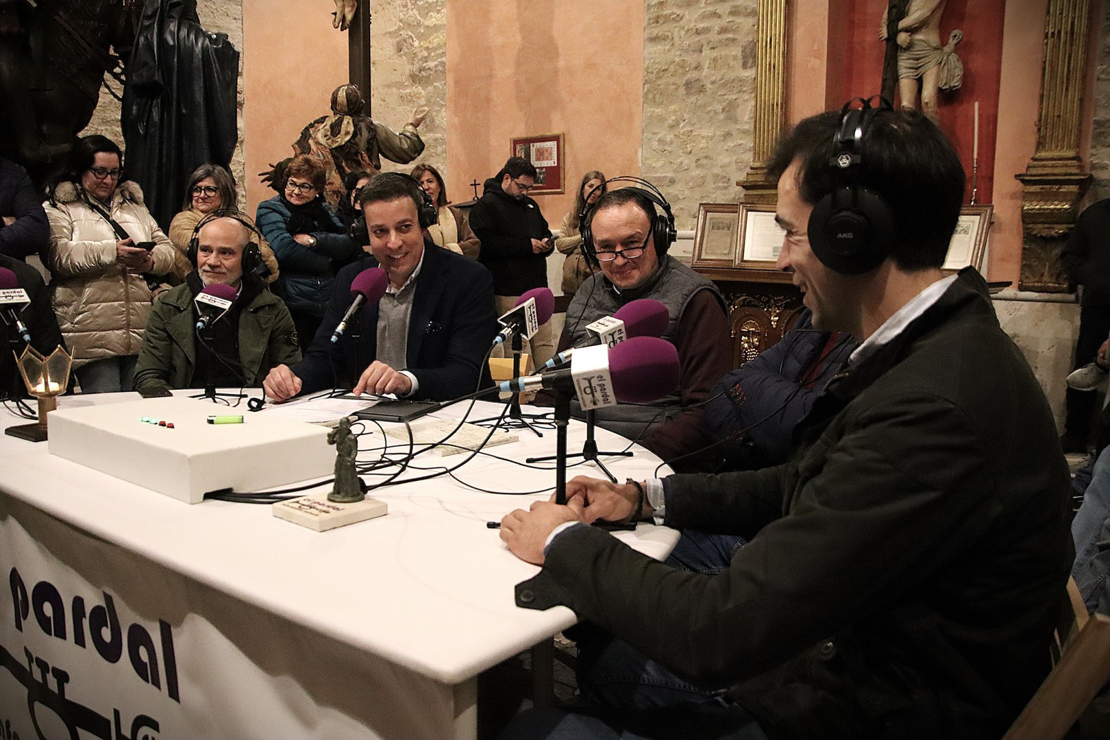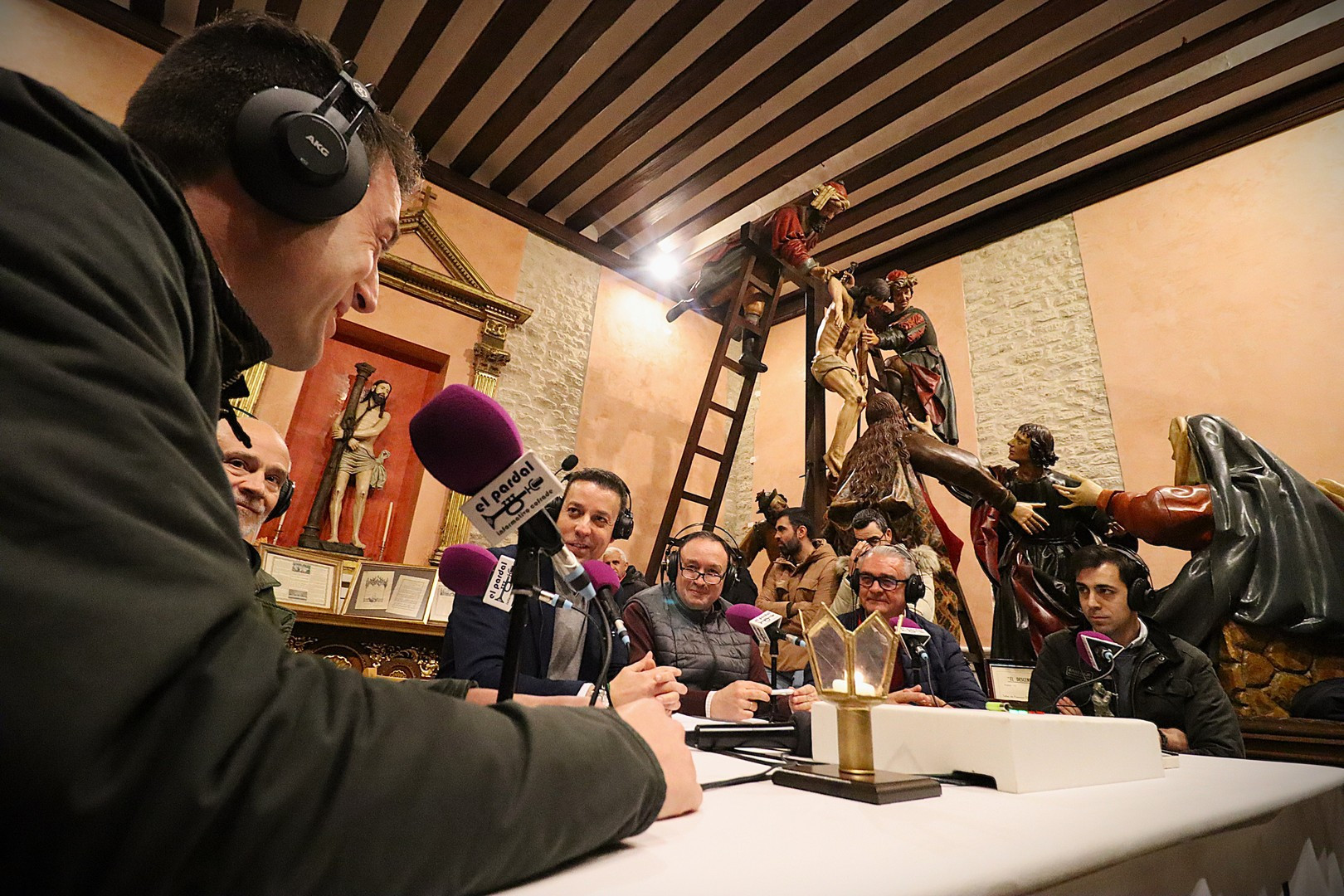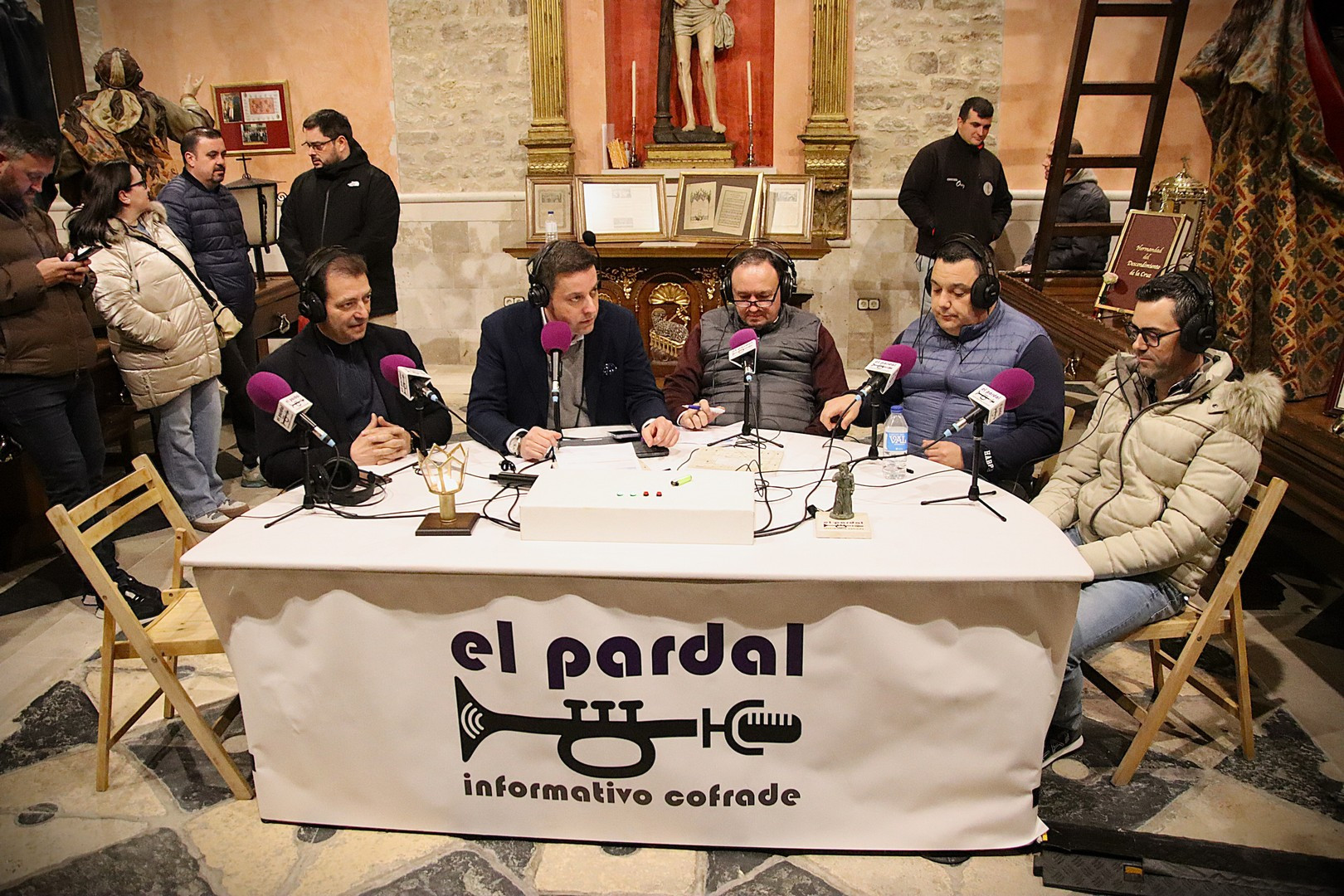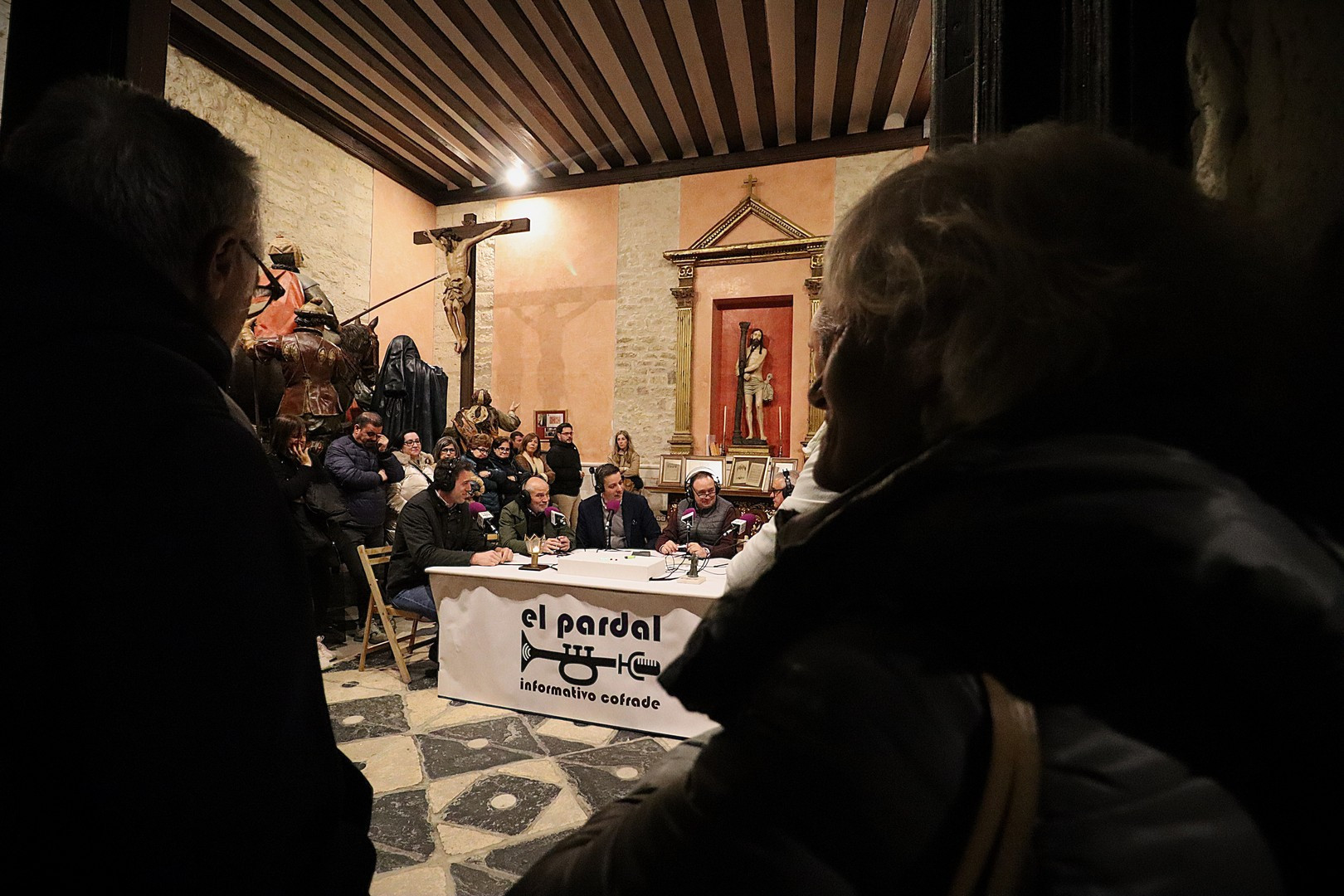 La Capilla de los Pasos Grandes fue el escenario este miércoles 25 de marzo donde poner el punto y final a la decimoquinta edición del programa radiofónico El Pardal Informativo Cofrade, tras seis intensos programas en esta Cuaresma 2026. Este salón de pasos, construido en 1664, y reformado en 1998, ha sufrido este año otro proceso de rehabilitación, especialmente en su respaldo posterior. Es lo que contaron el alcalde de Rioseco, David Esteban; el presidente de la Crucifixión, Javier Ubal; el vicepresidente del Descendimiento, Manuel Calvo y el muñidor de La Escalera, Daniel Barrios.