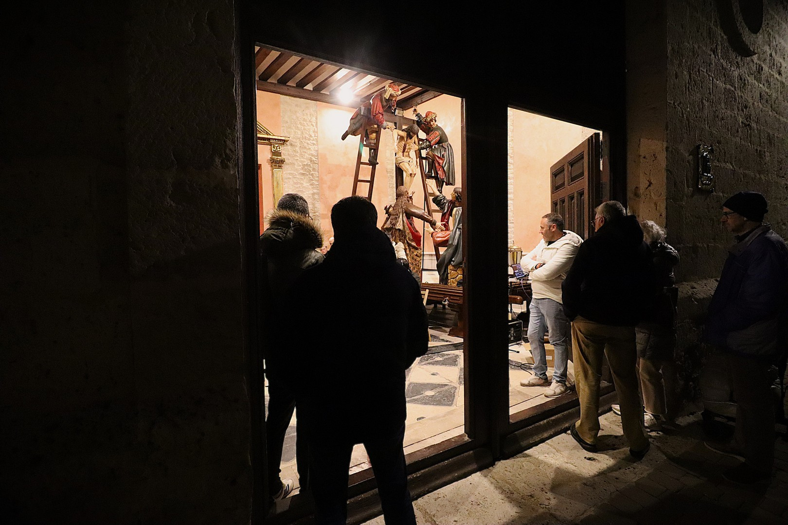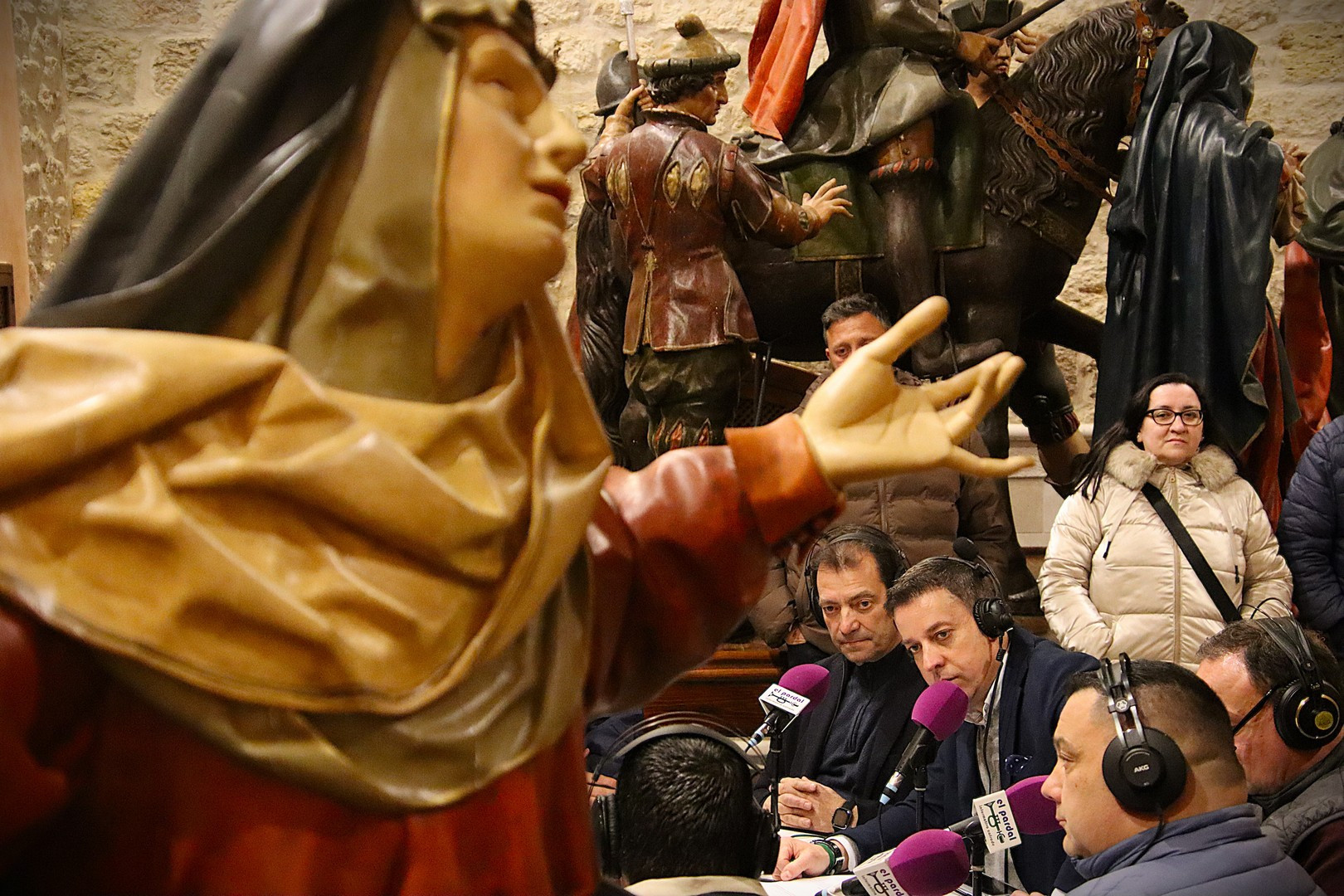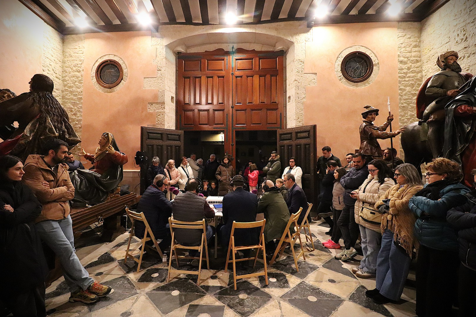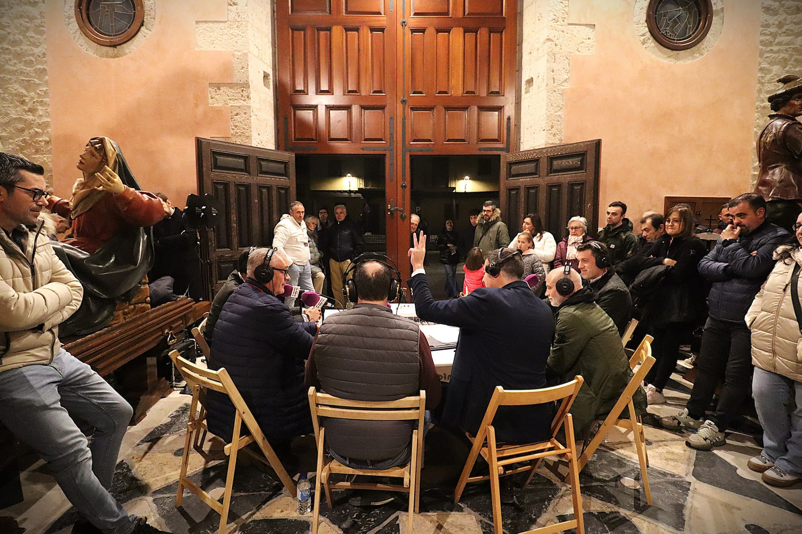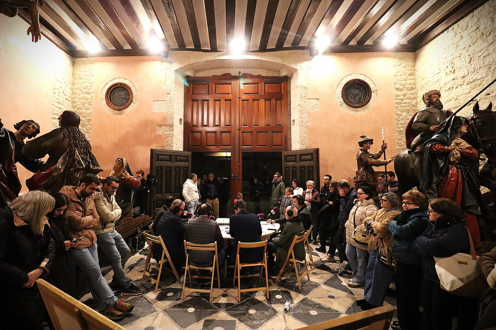 La Capilla de los Pasos Grandes fue el escenario este miércoles 25 de marzo donde poner el punto y final a la decimoquinta edición del programa radiofónico El Pardal Informativo Cofrade, tras seis intensos programas en esta Cuaresma 2026. Este salón de pasos, construido en 1664, y reformado en 1998, ha sufrido este año otro proceso de rehabilitación, especialmente en su respaldo posterior. Es lo que contaron el alcalde de Rioseco, David Esteban; el presidente de la Crucifixión, Javier Ubal; el vicepresidente del Descendimiento, Manuel Calvo y el muñidor de La Escalera, Daniel Barrios.